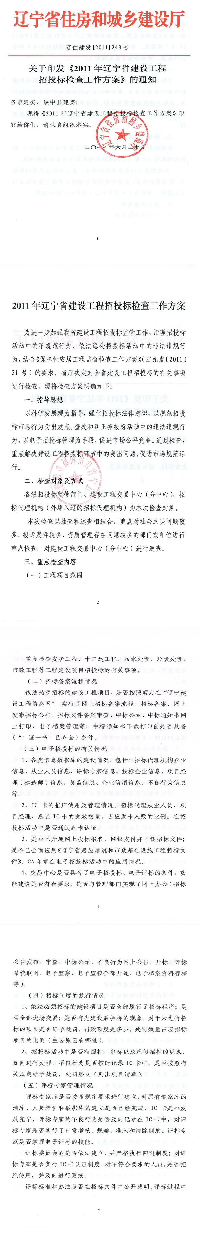 【概要描述】关于印发《2011年辽宁省建设工程招投标检查工作方案》的通知