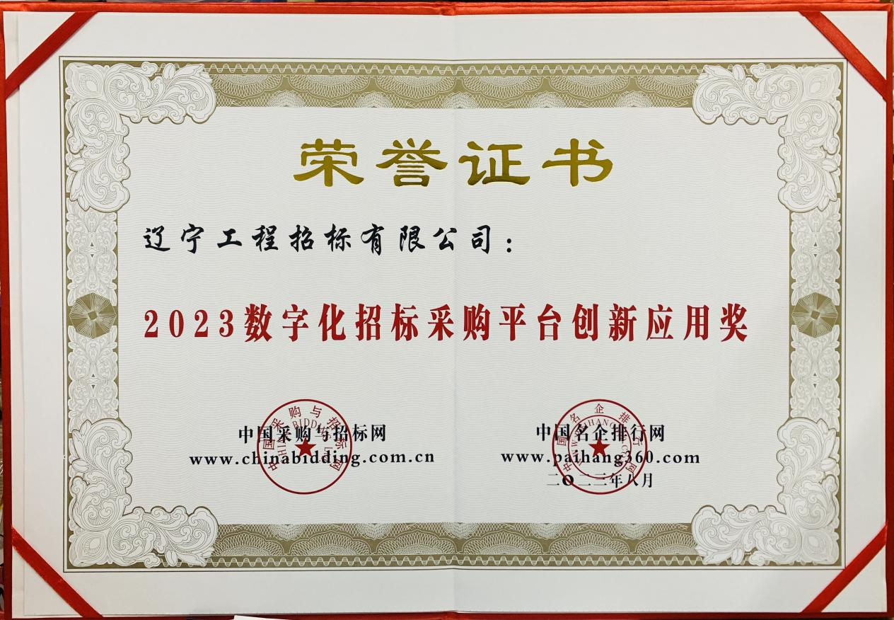 公司在中国采购与招标网举办的“2023招投标领域年度聚焦”活动中荣获“数字化招标采购平台创新应用奖”。